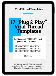17 “battle tested” fill-in-the-blank templates for easy content creation on Threads. Compete with examples.